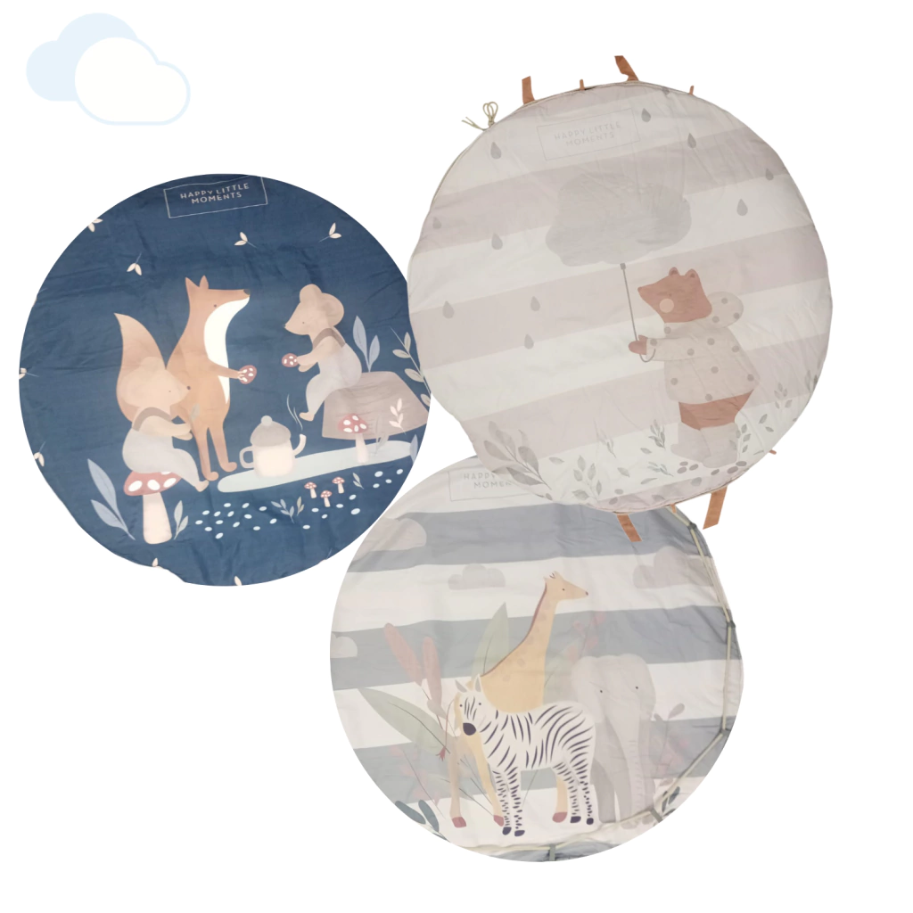 Descubre la solución perfecta para mantener los juguetes organizados y el espacio de juego limpio y ordenado! El Bolso Playmat Alfombra Impermeable Porta Juguete Happy Little Moments es ideal para que los pequeños disfruten de horas de diversión, mientras que los padres pueden mantener el orden de manera sencilla y eficiente.