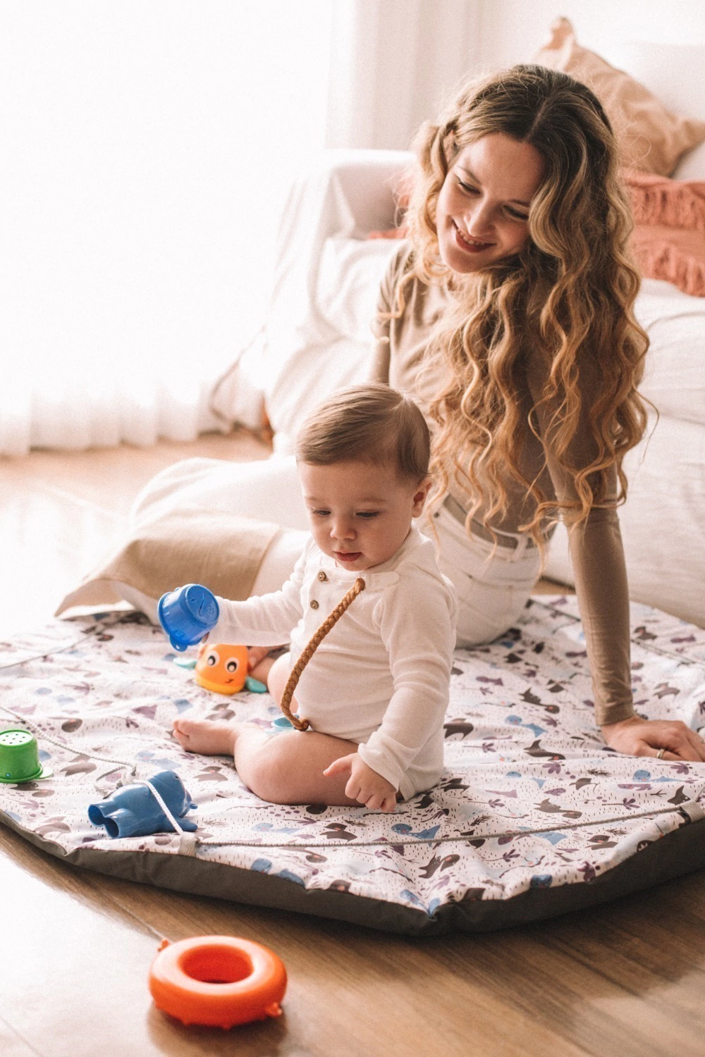 Se convierte en un bolso porta-juguetes, liviano y práctico para llevar a todos lados. su reverso es resistente y 100% impermeable; apto todo tipo de superficies interiores y exteriores. (pasto, arena). Está relleno de doble guata premium y su parte interna es de tela de algodón suave para tu bebé.