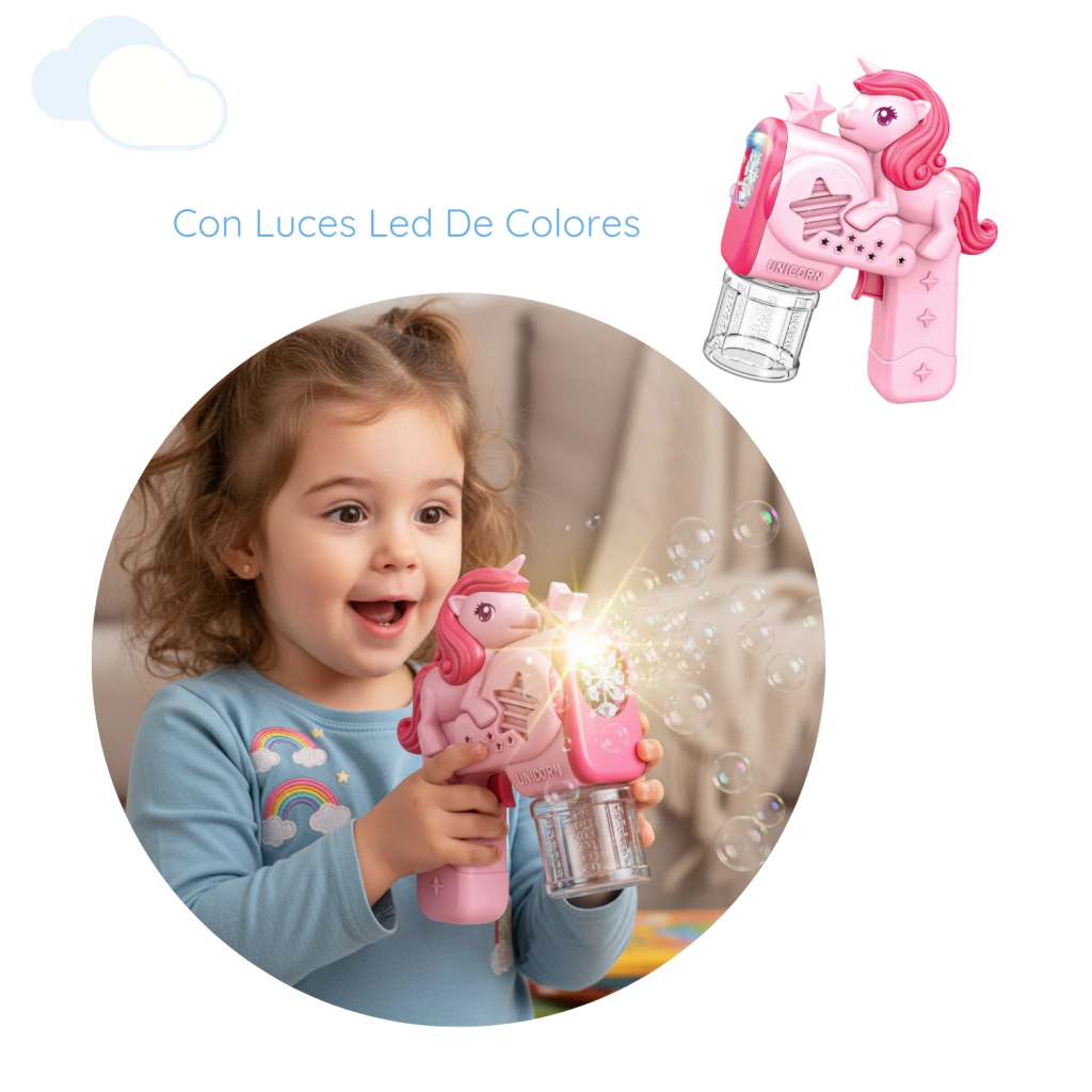 Descubrí la diversión sin límites con la pistola burbujero de unicornio, un juguete ideal para sorprender y entretener a niños y niñas en cualquier ocasión. Su diseño en forma de unicornio la convierte en el centro de todas las miradas, mientras que las luces incorporadas agregan un toque mágico al juego.