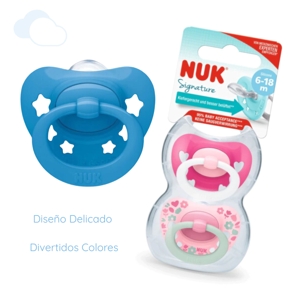 El Chupete X2 Silicona NUK Signature 6-18 Meses es la opción perfecta para padres que buscan calidad, seguridad y desarrollo saludable para sus hijos. Dale a tu bebé la mejor experiencia de succión y tranquilidad, con el respaldo de una marca líder en el cuidado infantil.