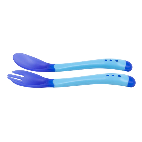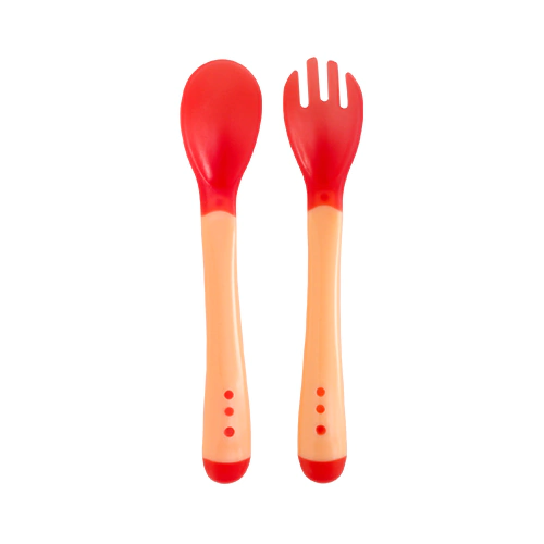 Cuchara y Tenedor con sensor de temperatura que se activa con el calor dejando la silicona de color blanquecina.