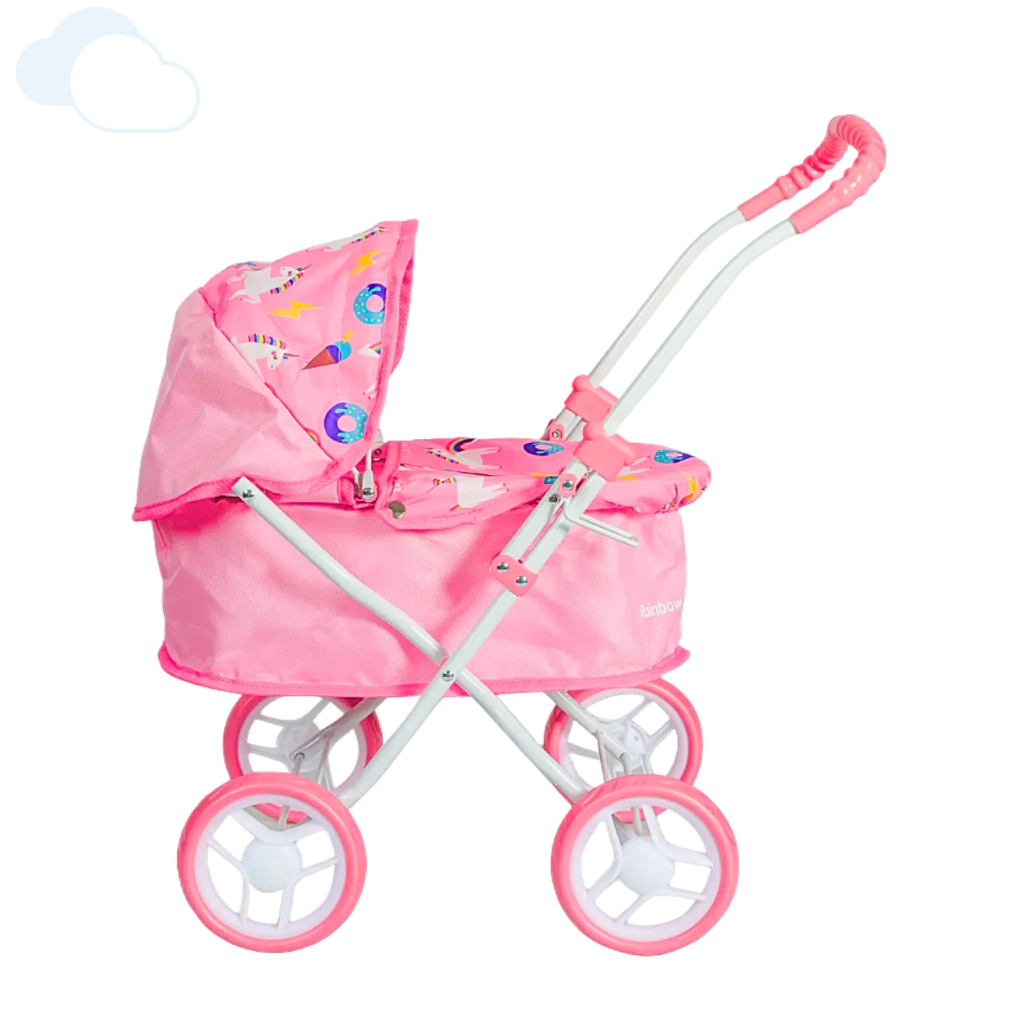 Descubrí el coche cuna para muñecas y bebotes Rainbow, el juguete perfecto para estimular la imaginación de niños y niñas desde los 3 años. Con 56 cm de altura, este cochecito ofrece el espacio ideal para que tus pequeños lleven a pasear a sus muñecas favoritas.