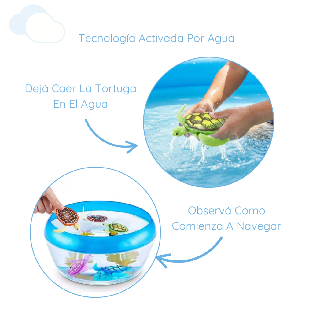 Movimiento automático: Cuando la tortuga entra en contacto con el agua, comienza a moverse sola, captando la atención de los niños y creando momentos de entretenimiento.