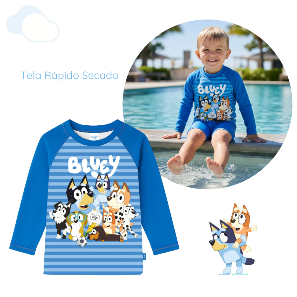 Malla Remera Infantil Bluey Protección UV Manga Larga Rayas