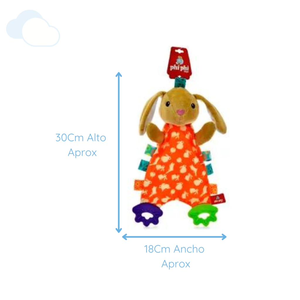 Peluche manta de apego animalitos phi phi toys Peluches con una gran variedad de telas y elementos coloridos y texturizados para estimular las habilidades sensoriales, cognitivas y motrices del bebé durante los primeros meses extra suave y blandita Mide 30cm aprox para + de 0 meses