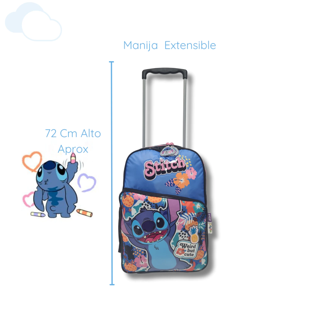 La Mochila Escolar Stitch Carrito 16 Pulgadas Hawai Wabro es el accesorio ideal para que tus hijos lleven todos sus útiles escolares de manera organizada y con estilo. Con un diseño inspirado en el querido personaje de Disney®, Stitch, esta mochila combina funcionalidad y diversión.