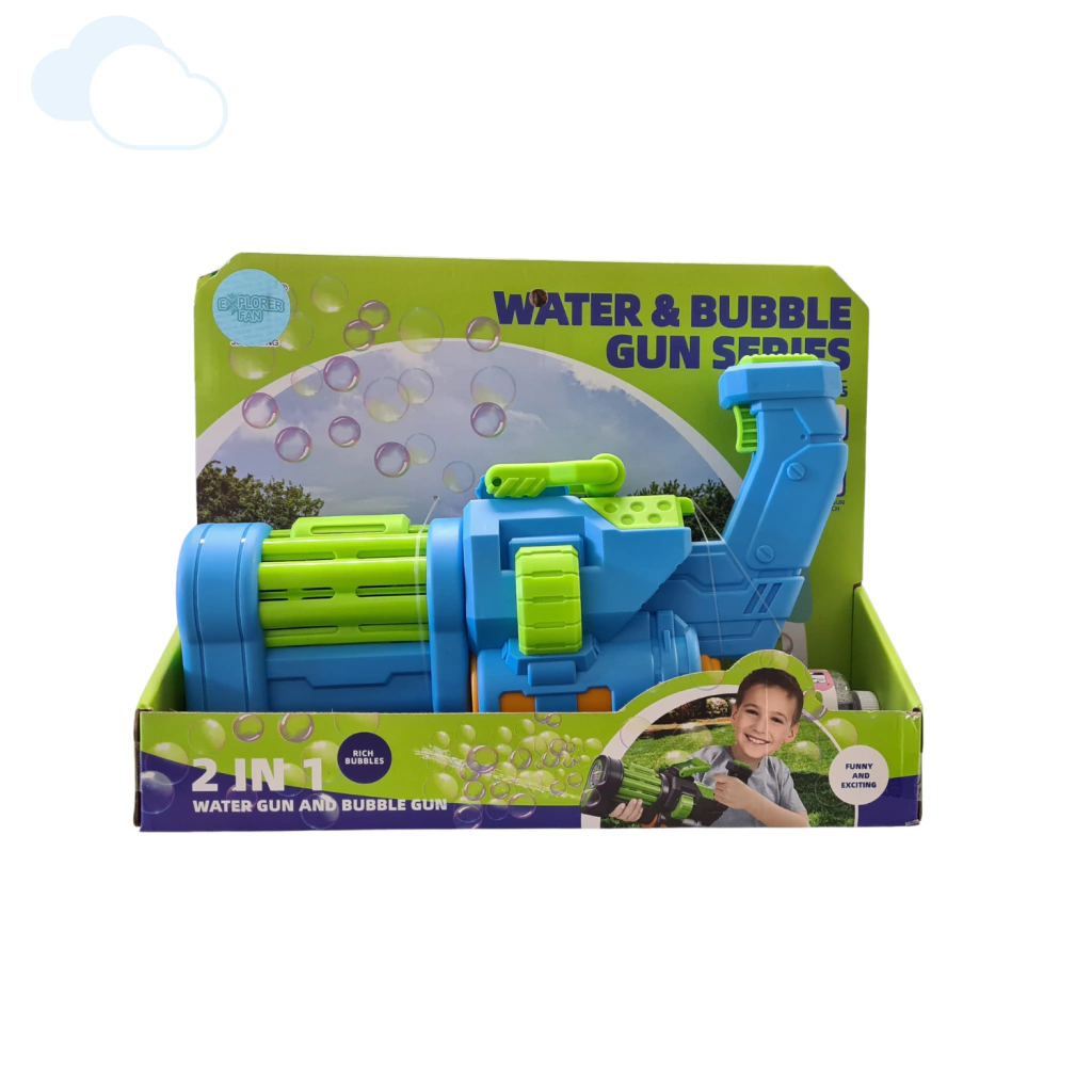 Pistola De Agua 2 en 1 Burbujero Gun Series Explorer Fan