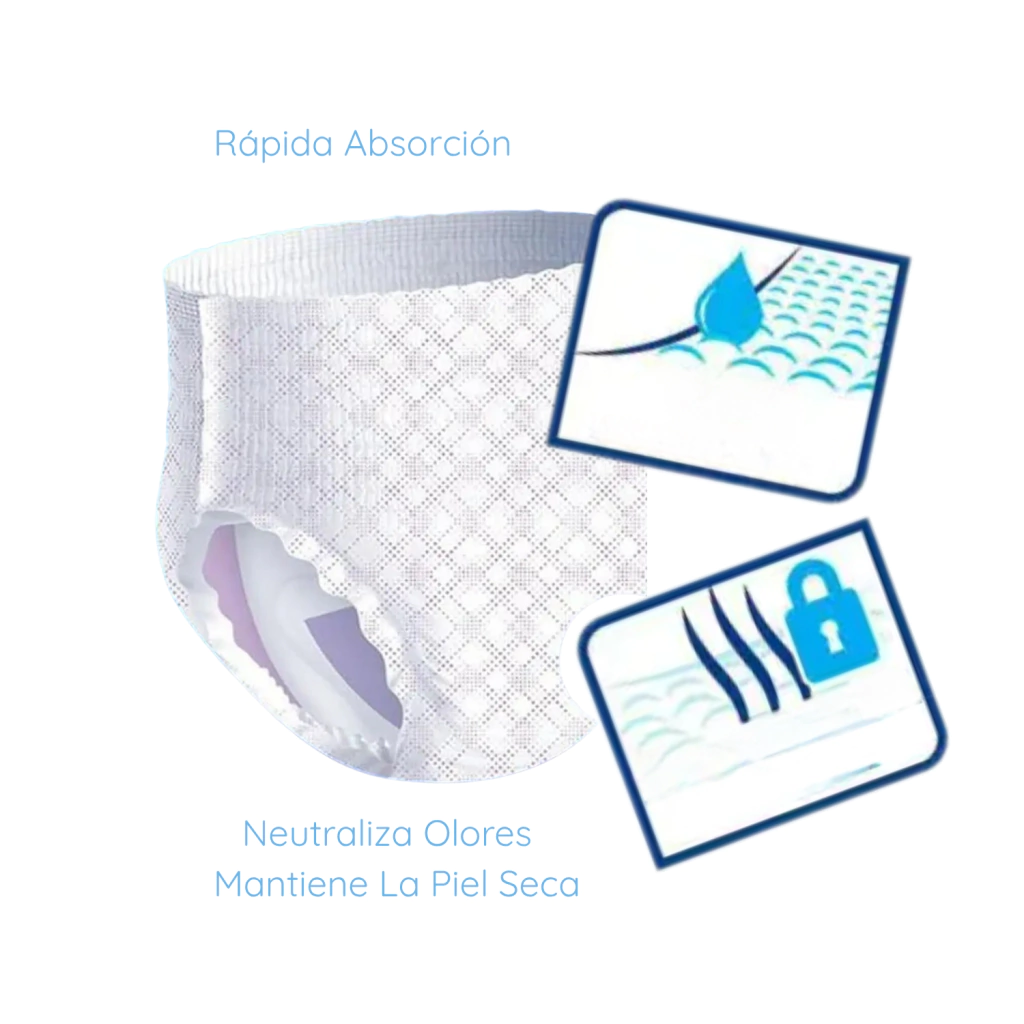 - Fácil de colocar: Su formato tipo bombacha se adapta cómodamente a la anatomía, ofreciendo libertad de movimiento.