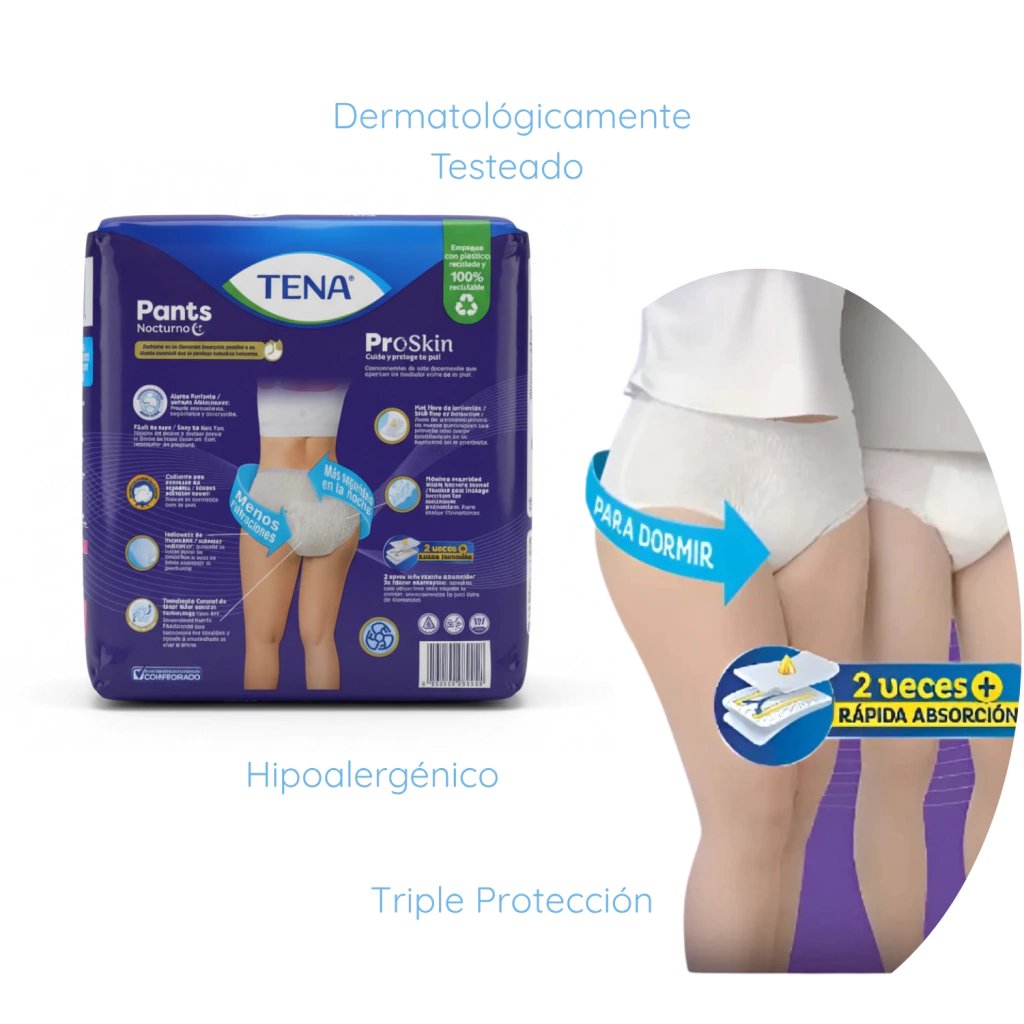 La Ropa Interior TENA Pants con su nueva presentacion está diseñada especialmente para brindar protección y comodidad durante el descanso nocturno. Ideal para personas con movilidad independiente, ofrece una solución segura y confortable frente a las pérdidas de orina, permitiendo disfrutar de un sueño ininterrumpido.