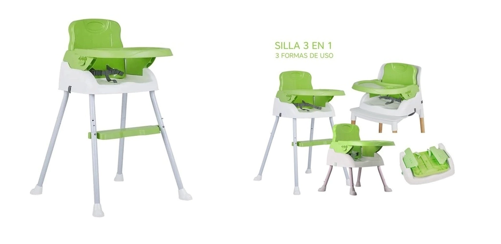 EN UNA PRIMERA ETAPA : acompañará a tu bebe como silla alta de comer con cinturon de 3 puntos , bandeja desmontable .