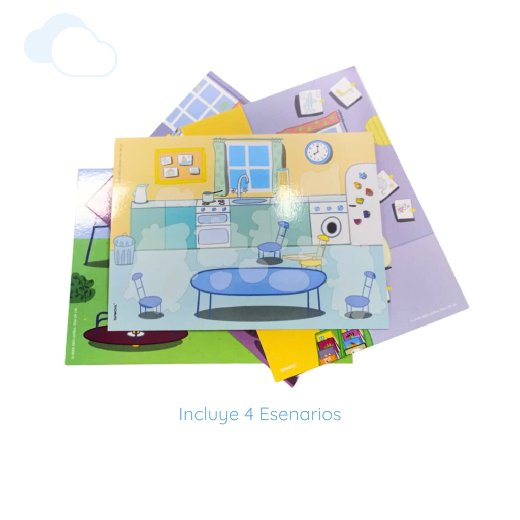 Contiene: 4 escenarios distintos y con mucho color + 4 planchas de vinilos