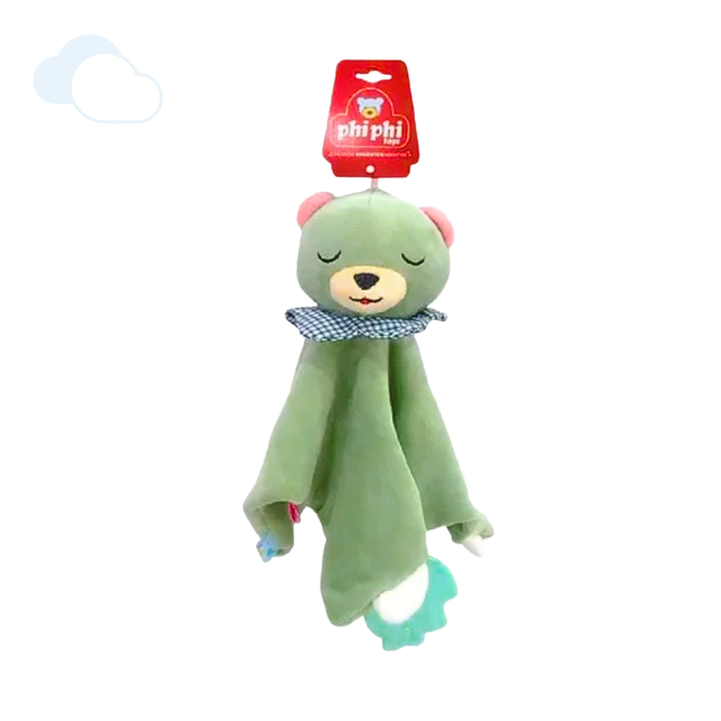 Es el compañero perfecto para tu bebé desde sus primeros meses. Suave y tierno, está confeccionado con materiales hipoalergénicos y libres de sustancias tóxicas, cuidando la piel delicada de los más pequeños. Disponible en encantadores diseños de oso verde y conejo beige, este trapito incluye un mordillo en forma de manzana y un sonajero, ideales para aliviar las encías y estimular el juego.