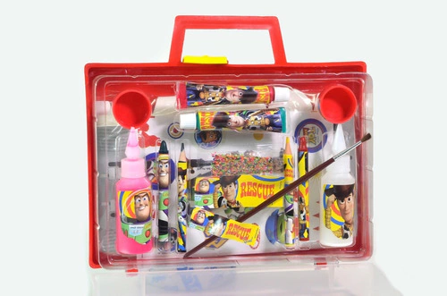 Valija para armar,pintar, y decorar casa de Toy Story. Incluye casa de cartón para armar, stickers, temperas, crayones, lápices,brillantina,plásticola y pincel.